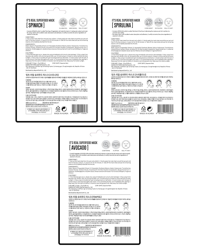 DERMAL Superfood Daily Fresh Care Assorted Sheet Mask Mega 10 Pack- Facial Sheet Mask for Glowing Refreshing Skin - Moisturizing Sheet Masks for All Skin Types' Face Enriched with Natural Ingredients