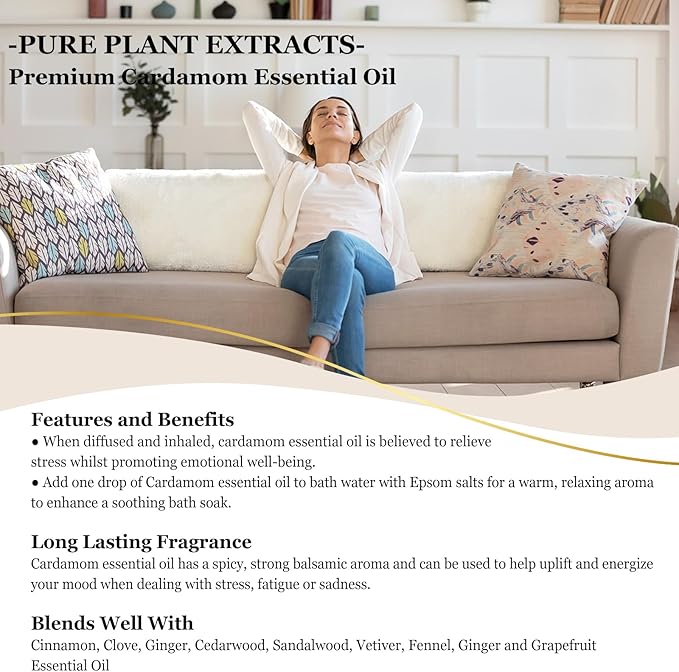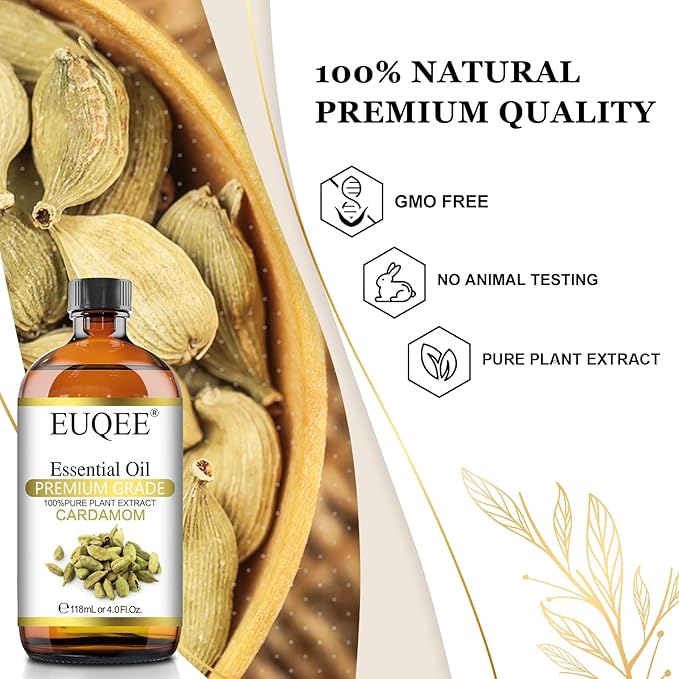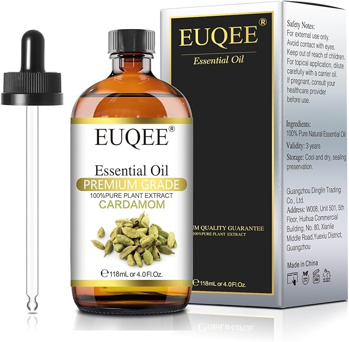 Cardamon Essential Oil 118 ml Large Bottle Premium Cardamon Oil with Glass Dropper, Great for Diffusers, Candle & Soap Making-4oz