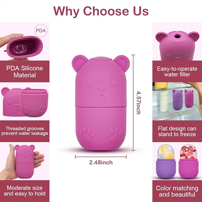 - ❄【REUSABLE FDA GRADE SILICONE】The ice roller for face is made of high quality thick silicone material, it is cute, simple and convenient to use, our handheld design allows the ice face roller head to slide easily on your skin. In addition, silicone skin care tools are food-grade and BPA-free, which makes them suitable for all genders and ages