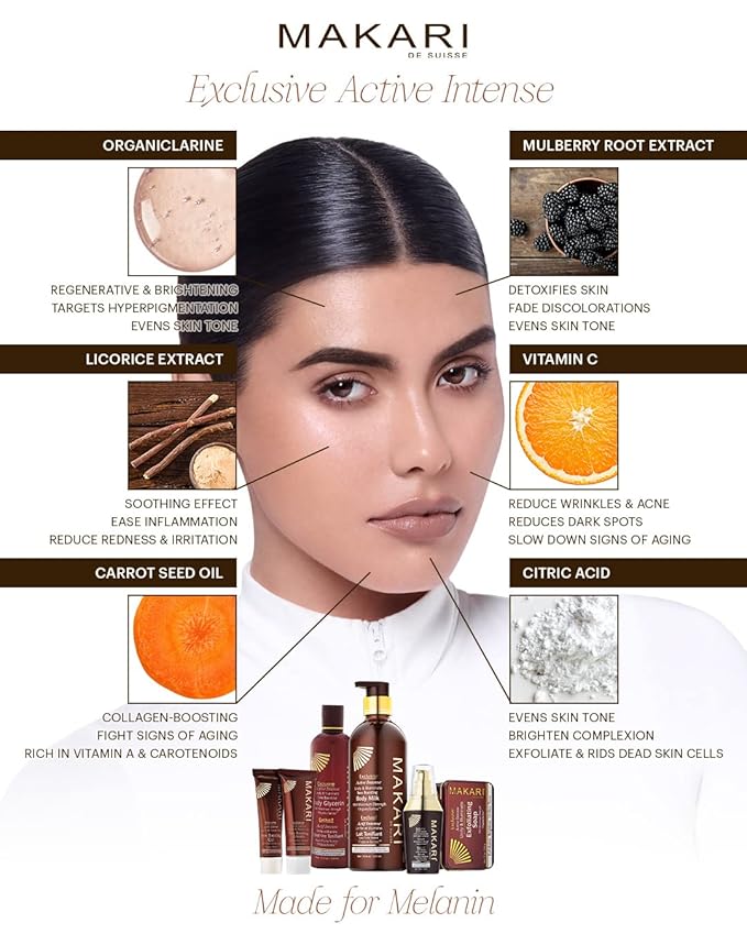 - EXCLUSIVE FORMULA: The only skincare line for melanin-rich skin with Organiclarine, our finest & most effective brightening ingredient yet; Unlock your skin's true radiance with our gift set for women
