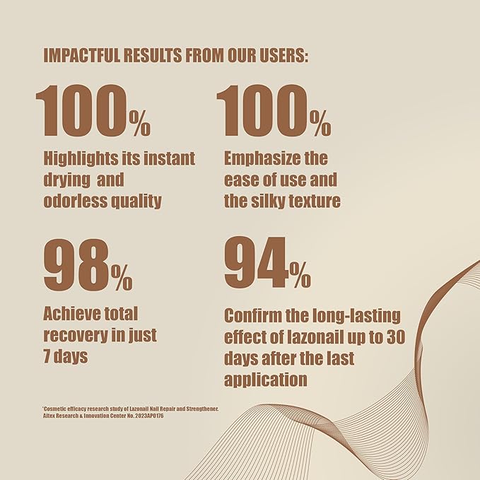 - A Sensory Experience Like No Other: Beyond its powerful benefits, Lazonaildelivers a luxurious sensory experience with its silky texture and quick-drying properties. Odorless and easy to apply, it ensures a pleasurable and hassle-free nail care routine, setting a new benchmark for comfort and efficiency in nail care products.