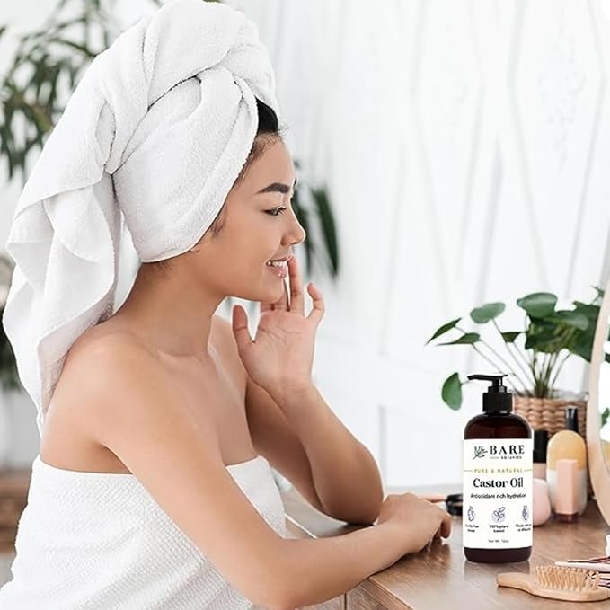 BARE BOTANICS 100% Pure Castor Body Oil 16 oz - Hexane Free & Natural for All Over Moisturization - Multipurpose Carrier Oil for DIY - Hydrate Dry Skin, Hair & Body - Vegan & Cruelty Free Beauty