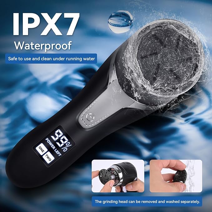 - 【IPX7 Waterproof and Lightweight】IPX7 waterproof design, this electric foot callus remover can be cleaned under tap water or soaked in water, making it easier to remove dead skin and calluses and easier to clean. This foot callus remover tool is lightweight and portable, and can be easily stored in a backpack or washbag.