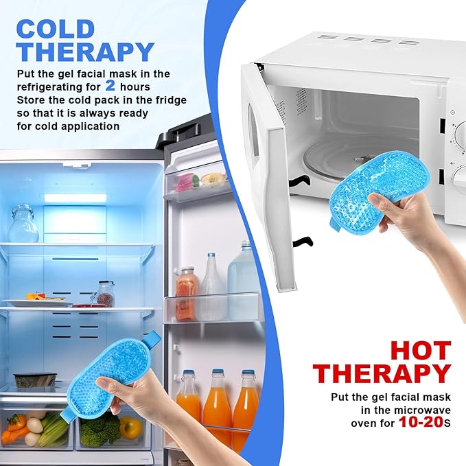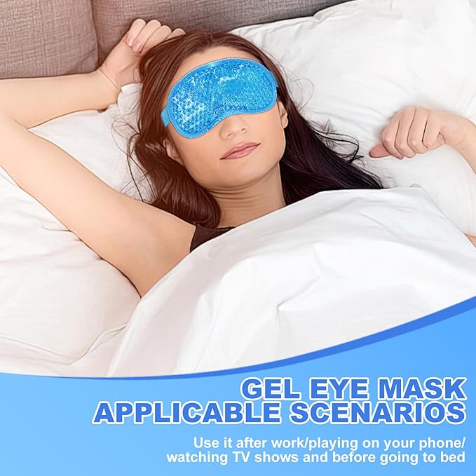 - đ©ăApplications and EffectsăCold hot gel eye mask can reduce dark circles,swollen eyes,puffy eyes,dark circles,eye bags,muscle aches,relieve stress,improve sleep and eye beauty care.The open-hole decompression design is suitable for use at work,for eye and before sleeping.