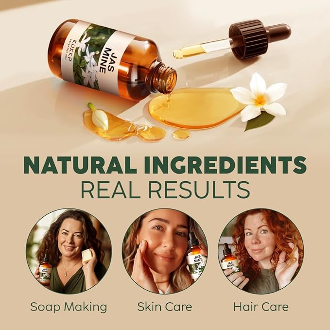Kukka Jasmine Essential Oil for Diffuser - 4 Fl Oz - 100% Pure Natural Jasmine Oil for Skin, Hair & DIY Soap Making Scents - A Great Relaxing Floral Addition for Hair Care & Perfume