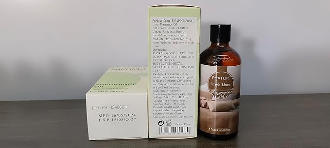 - 【Premium Fresh Linen Fragrance Oil】: This soft, subtle fragrance exudes a powdery scent. This fresh essence is infused with top notes of Crisp Linen, Apple and Bergamot. Floral middle notes of Neroli blossoms and Rose petals mingle with base notes of Musk, Amber and Sandalwood.