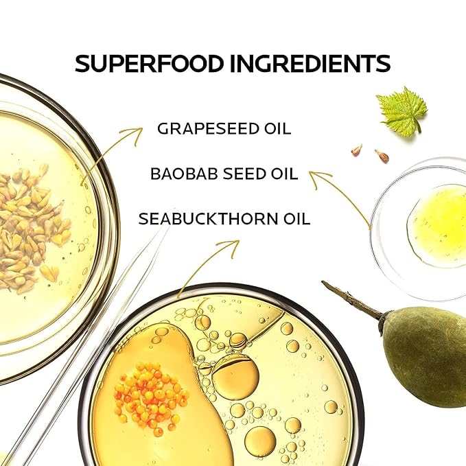 - Special Formula: This facial oils for anti aging made with 3 kinds of superfood-Grape Seed Oil, Sea Buckthorn Oil and Baobab Seed Oil which are antioxidant rich plant-based oils to hydrate and smooth skin. Meanwhile with Vitamin E, Procyanidins and OPC such antioxidants, facial oil can be super-resistant to oxygen