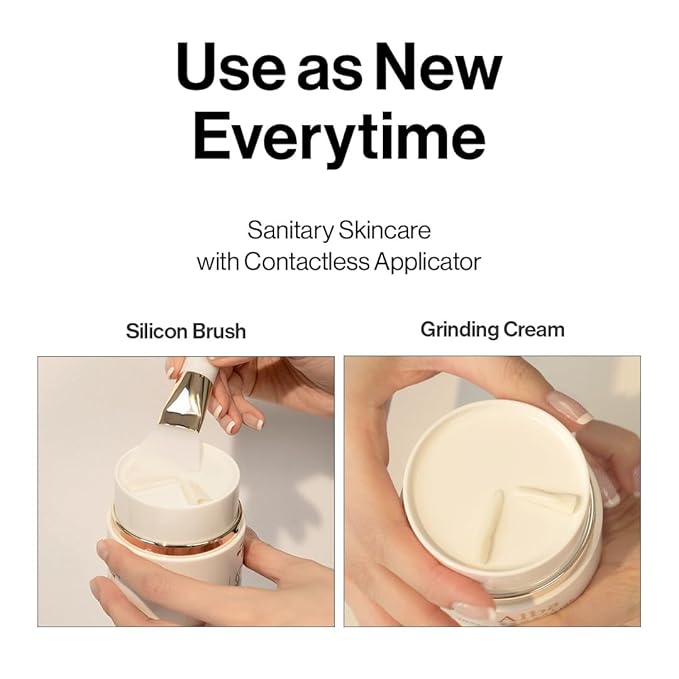 - Rotate the cap clockwise to grind and scoop the cream hygienically using the custom spatula provided. Clinically proven mild use for sensitive skin. *Clinically tested, hypoallergenic