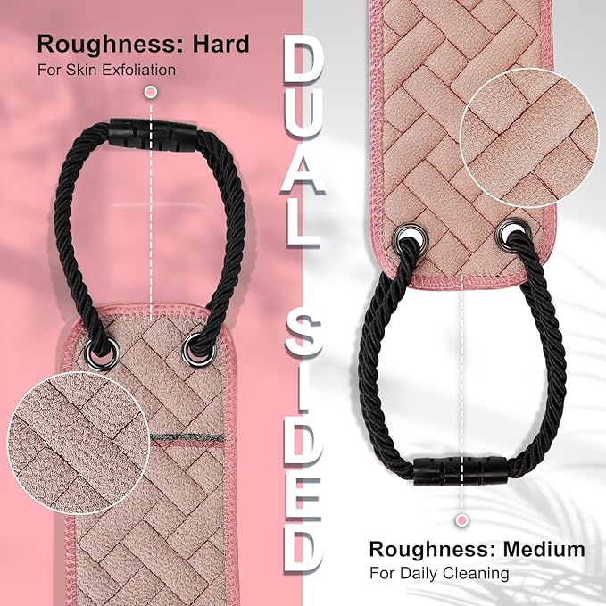 Exfoliating Back Scrubber with Upgraded Handles, 38.5 Inch Double-Sided Body Scrub Bath Exfoliator, Exfoliating Washcloth for Use in Shower, Back Washer to Deep Clean Your Skin for Men & Women (Pink)