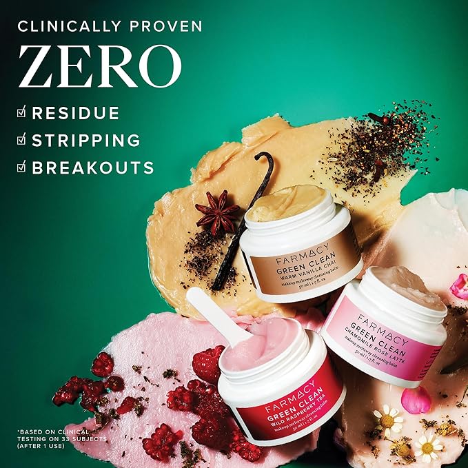 Farmacy Cleansing Balm Skin Care Set - Tea Harvest Travel Size Makeup Remover - Limited Edition Skincare Set Includes Warm Vanilla Chai, Wild Raspberry Tea + Chamomile Rose Latte (3 Count)