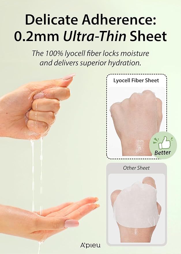 A'PIEU Daily Sheet Mask (Green Tea) - Moisturizing Korean Face Masks, 30-day supply, Lyocell fabric for comfort, Saturated with Green Tea Extract Essence