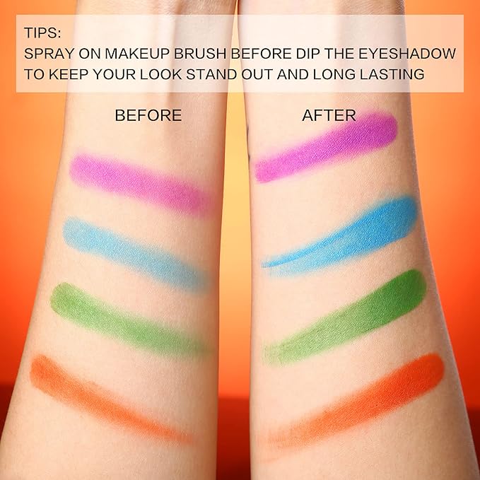 - LOCK IN YOUR LOOK: Embrace a flawless look with makeup spray, long lasting will always keep your foundation, eyeshadow, blush and concealer in place, and keeps color fresh. Remains no melting, no fading throughout the day.