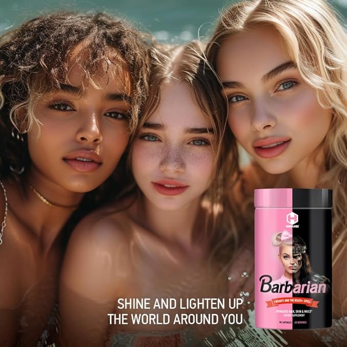Barbarian β Extra Strength Unisex Collagen Peptides for Healthy Hair, Skin, Nails; Joints and Bones Support; Upgraded with Hyaluronic Acid, Biotin, Chondroitin and Vitamin C, 90 Capsules