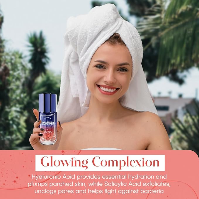 - Product Benefits : Hyaluronic Acid Hydrates, smooths, and plumps dry or wrinkled skin. Particularly helpful for combating dryness and improving skin texture and elasticity; Salicylic Acid is Known for its exfoliating, pore-cleaning, and bacteria-fighting abilities, helping with oily, acne-prone skin, helping prevent whiteheads and blackheads. Hyaluronic Acid Hydrates, smooths, and plumps dry or wrinkled skin. Particularly helpful for combating dryness and improving skin texture and elasticity; Salicylic Acid is Known for its exfoliating, pore-cleaning, and bac… See more