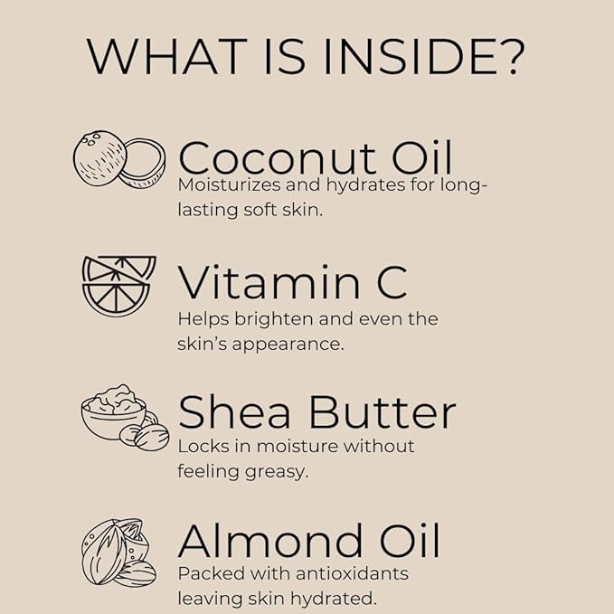 - Whipped Texture: The light and airy whipped texture of our body butter provides a velvety-smooth application that melts effortlessly into your skin, leaving it deeply moisturized without feeling greasy or heavy.