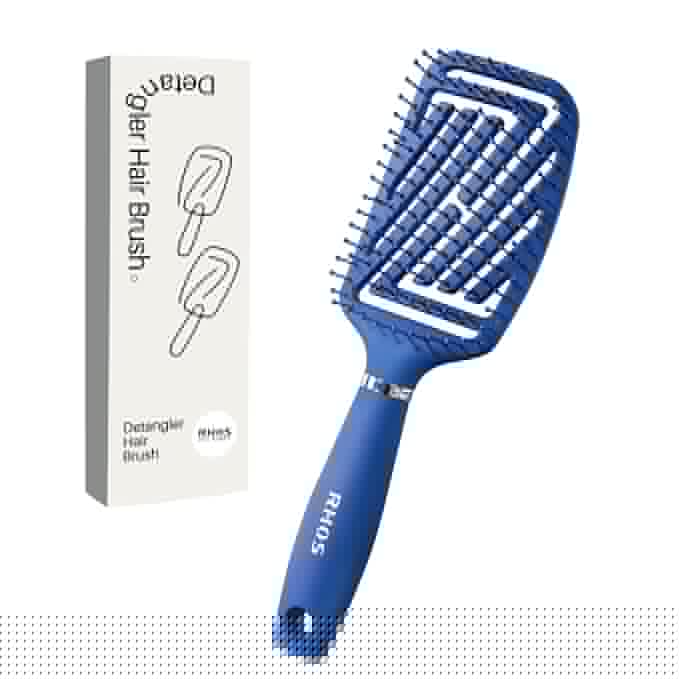 RHOS Curved Vented Detangling Hair Brush for Men, Faster Blow Drying/Styling,Paddle Vent Detangler Brush for Short,Thin,Bangs,Wet&Dry Hair(Blue)