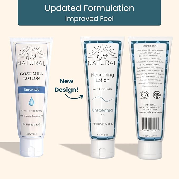 - Premium Goat Milk: Our unscented lotion for women and men is made with real goat milk, naturally rich in nutrients, sourced from free-range Nigerian dwarf goats. Cruelty-free and never tested on animals.