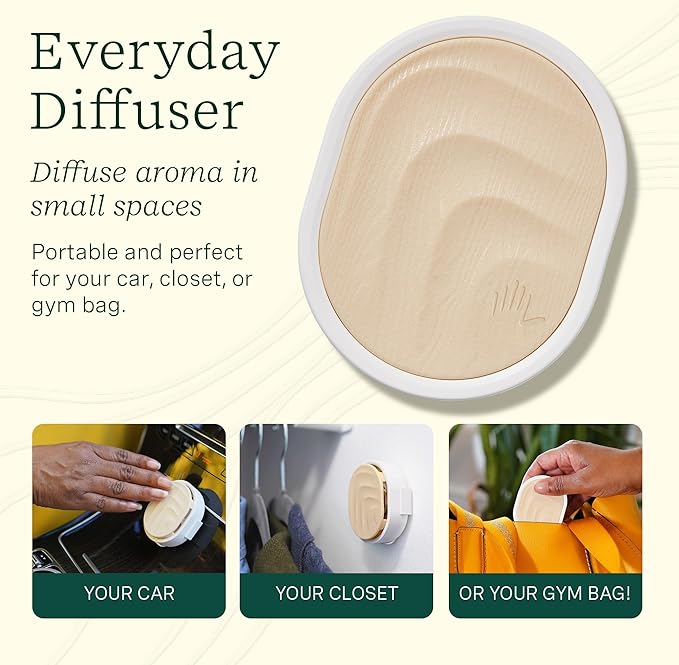 - Everyday Diffuser: Turn any small space into an aroma experience or support your well-being on-the-go. This portable diffuser requires no batteries and is perfect in your car, desk, closet, or gym bag.