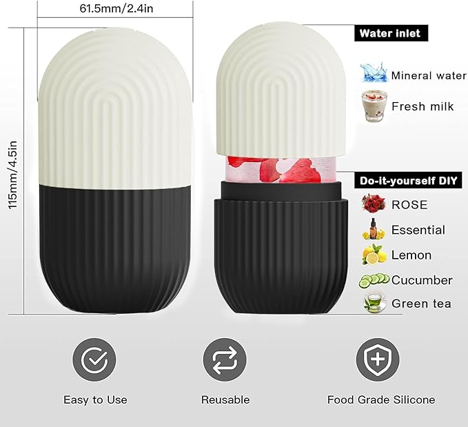 XHJRI Face Roller Massager for Skin Care, Reusable Ice Mold Massage Roller - Cordless, Battery Powered, Black White, Migraine Relief, Rolling Therapy for Whole Body