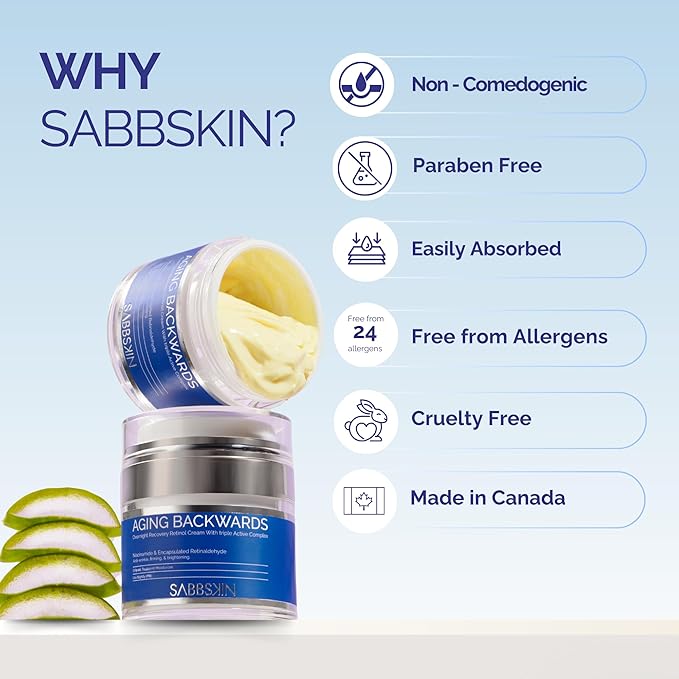 - Skin Nourishment!: Aging Backwards is Infused with Retinol & within Health Canada cosmetic limits, Niacinamide, Shea butter, Vitamin E, Aloe, Jojoba & Grapeseed oil. Our Anti wrinkle cream for women and men firms skin, reduces the appearance of wrinkles & improves the skin tone & texture