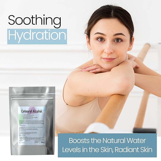 - High-Quality Emollient: Cetearyl Alcohol, is one of the cosmetic grade ingredients, acts as an effective emollient , enhancing the smoothness of your skincare formulations. Ideal for emollient creams, DIY creams and lotions, it provides a luxurious feel to your products.