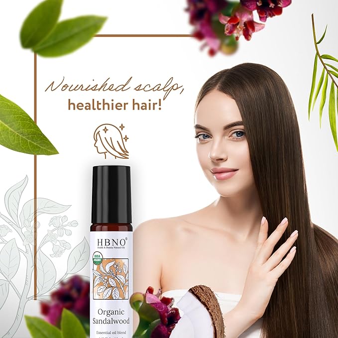 HBNO Organic Australian Sandalwood Essential Oil Roll-On -1/3oz(10 ml) Travel Size-USDA Certified Organic Sandalwood and Mct OilsPerfect for Traveling,Aromatherapy,Massage,perfumes,moisturizer