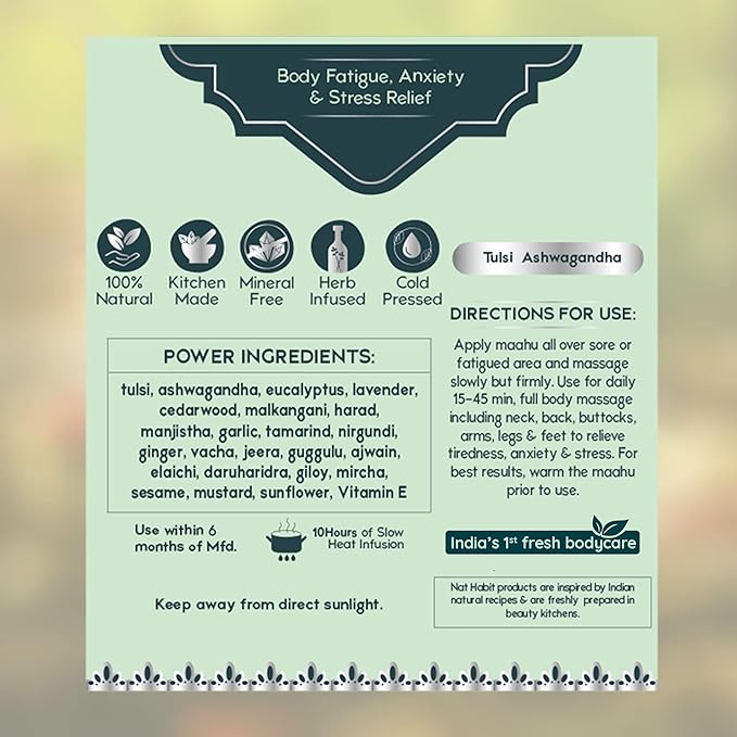 Pure Tulsi Ashwagandha Maahu, Ayurvedic Body Massage Oil, 100ml