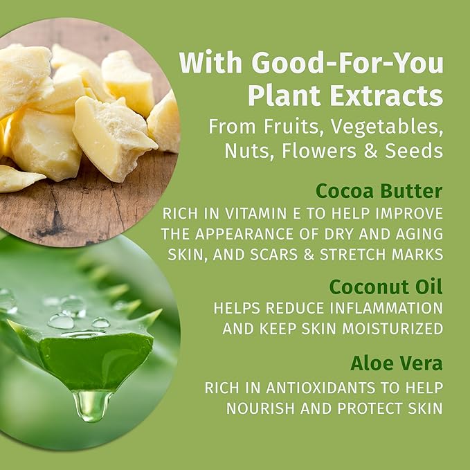 - NOURISHING: Composed of skin-essential linoleic omega 3 & fatty acids & made with cocoa butter, coconut oil, & aloe that help strengthen the skin barrier, to keep skin soft for a longer time, & to help skin look & feel younger