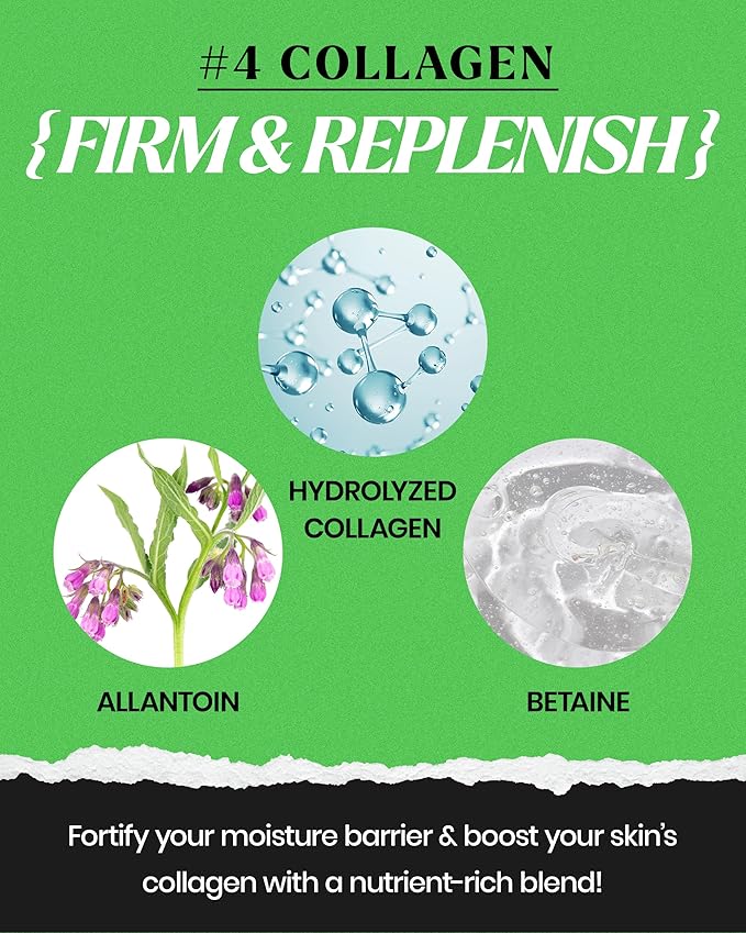 - NOURISHING COLLAGEN. Infused with Hydrolyzed Collagen, this Collagen mask helps restore skin's firmness, leaving it plump and revitalized. Allantoin works alongside to soothe and refresh, creating a visibly smoother and more vibrant-looking complexion.