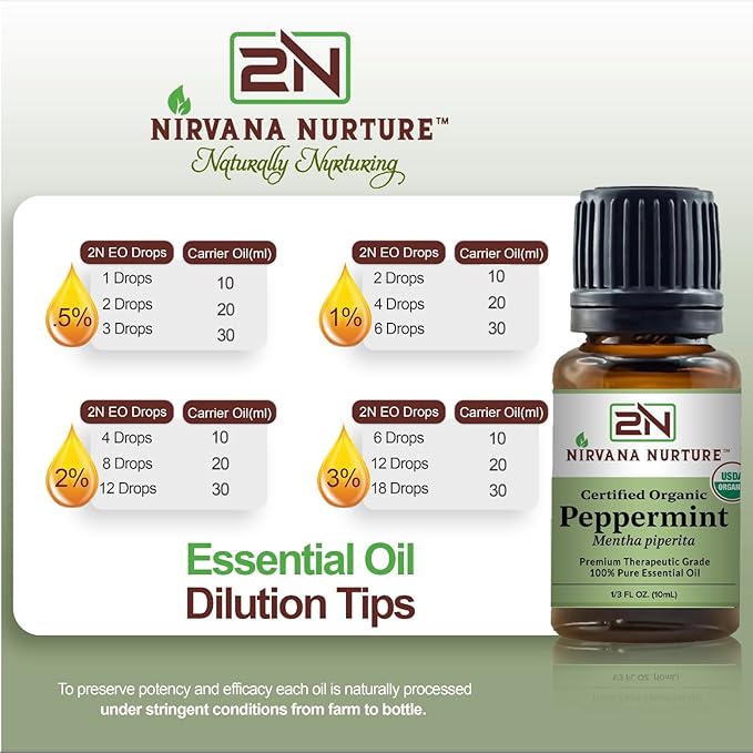 - 100 % PURE AND USDA CERTIFIED ORGANIC: Nirvana Nurture essential oils are 100% pure and USDA certified organic, extracted through steam distillation for premium therapeutic grade quality. To ensure potency and efficacy by naturally processing each oil under stringent conditions from farm to bottle. Our commitment to purity means our oils are chemical-free, with no additives or fillers, and are Non-GMO. We're proud to be cruelty-free, never testing on animals.