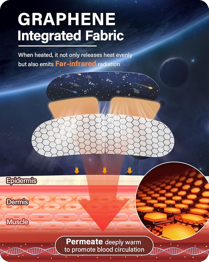 - đăUpgraded Graphene Steam Eye MaskăOur heated eye mask is added with a graphene contact layer, which releases far-infrared microwaves during the hot compress, promotes blood circulation around the eyes. Steam Warm Eye Masks can relieve your eye fatigue,moisturize your eyes, improve your sleep quality, reduce dry puffy eyes and dark circles.
