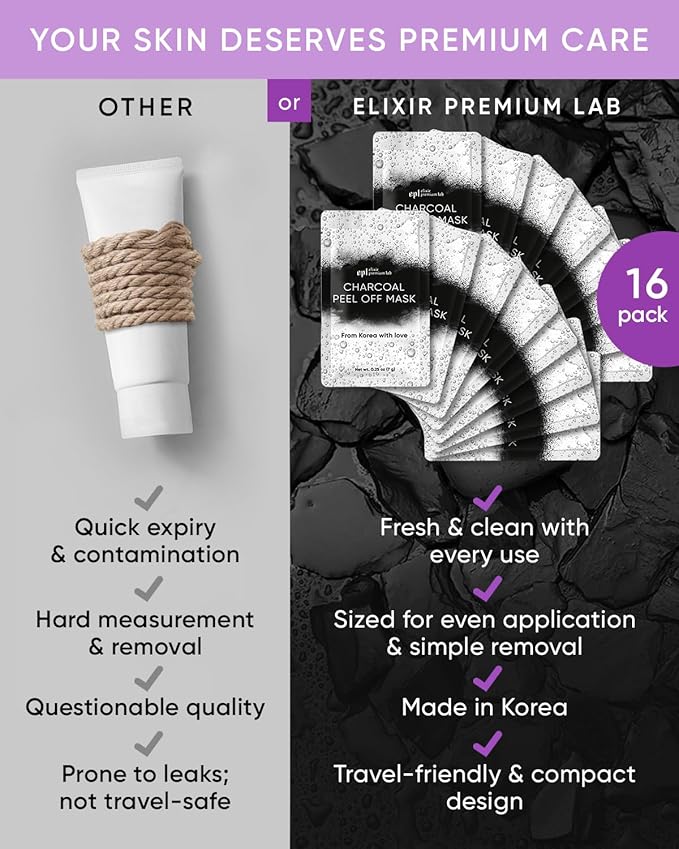- Hygienic & Compact Design: Our charcoal face mask is packed in single-use peel off face mask skin care sachets; Simply apply, let dry, peel off & you’re ready to go; Travel freely & keep your skin clean with our face masks skincare peel off;