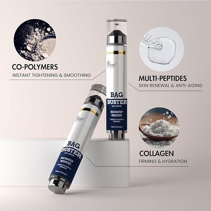 - FLAKE-FREE SMOOTH FINISH: Bag Buster delivers a natural, smooth glow—no powdery residue, no flaking. This all-in-one formula works as an under eye tightener, instant eye bag remover, puffiness corrector, and wrinkle filler for visibly firmer, refreshed eyes.