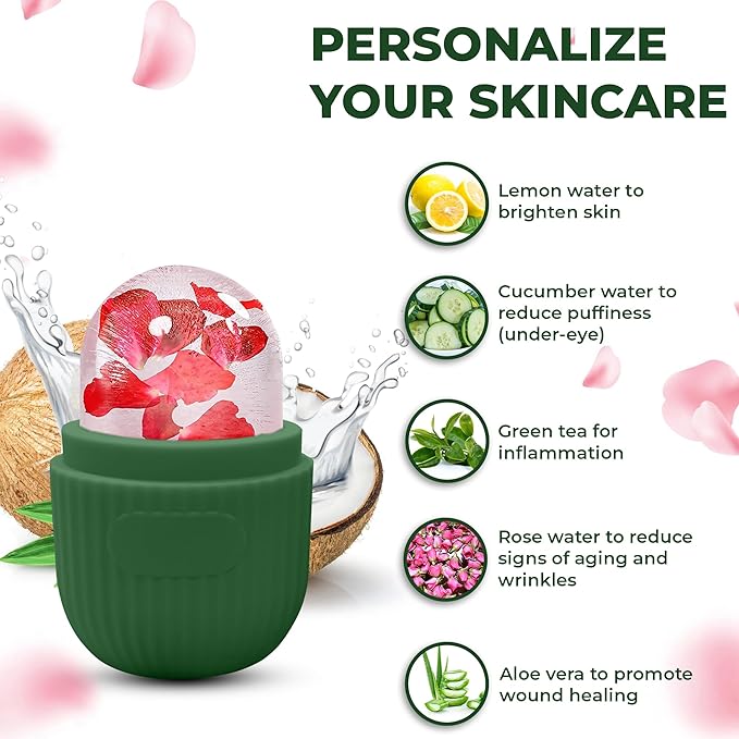 - ✅ VERSATILE COOLING EFFECT - The ice roller for face can be customized with various ingredients like cucumber water, green tea, and coconut milk to suit your skin's needs, such as brightening, inflammation reduction, and promoting skin glow, making it perfect for all skin types