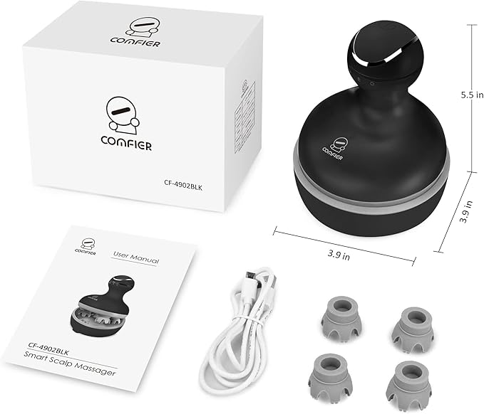 - Portable and Waterproof: Compact in size, COMFIER cordless scalp massager is comparable to a mug, offering the flexibility to use it anywhere after a full charge. With an extended battery life, the head scratcher can be used for hours on a single charge. Crafted with IPX-7 waterproof material and featuring both clockwise and counterclockwise rotation, it ensures a thorough scalp massage and effective dandruff removal.