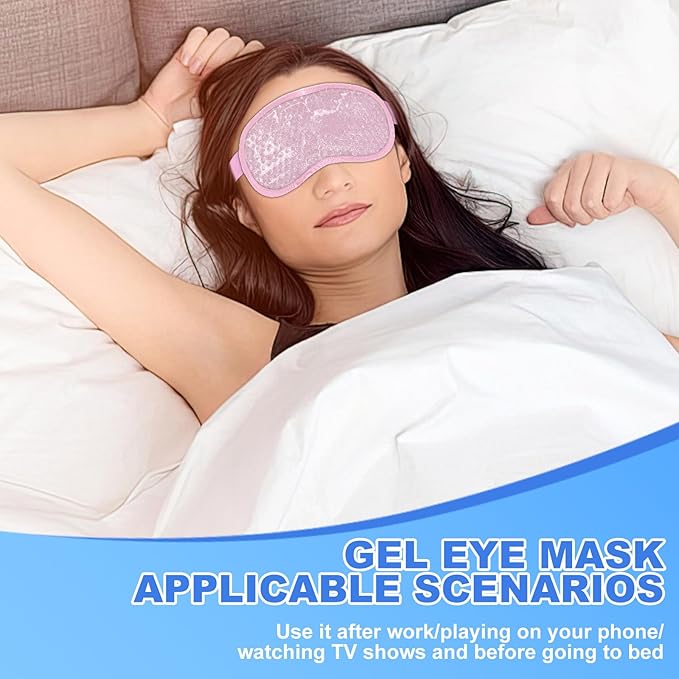 - đ©ăApplications and EffectsăCold hot gel eye mask can reduce dark circles,swollen eyes,puffy eyes,dark circles,eye bags,muscle aches,relieve stress,improve sleep and eye beauty care.The open-hole decompression design is suitable for use at work,for eye and before sleeping.