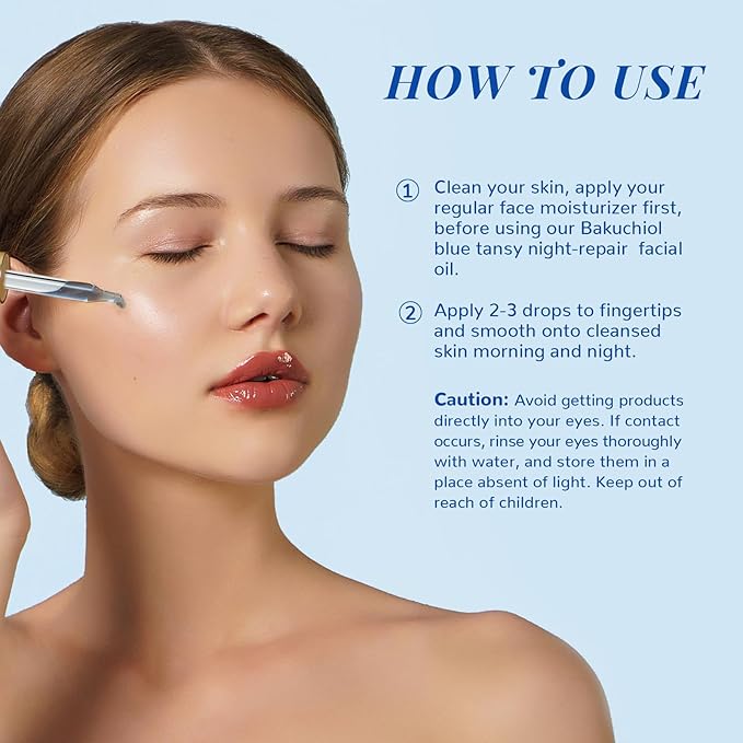 - ANAI RUI Bakuchiol+Blue Tansy Night-Repair Facial Oil is a non-greasy and lightweight skincare oil that deeply moisturizes and nourishes your skin. It visibly improves fine lines, wrinkles, and skin texture, promoting a youthful and radiant complexion.
