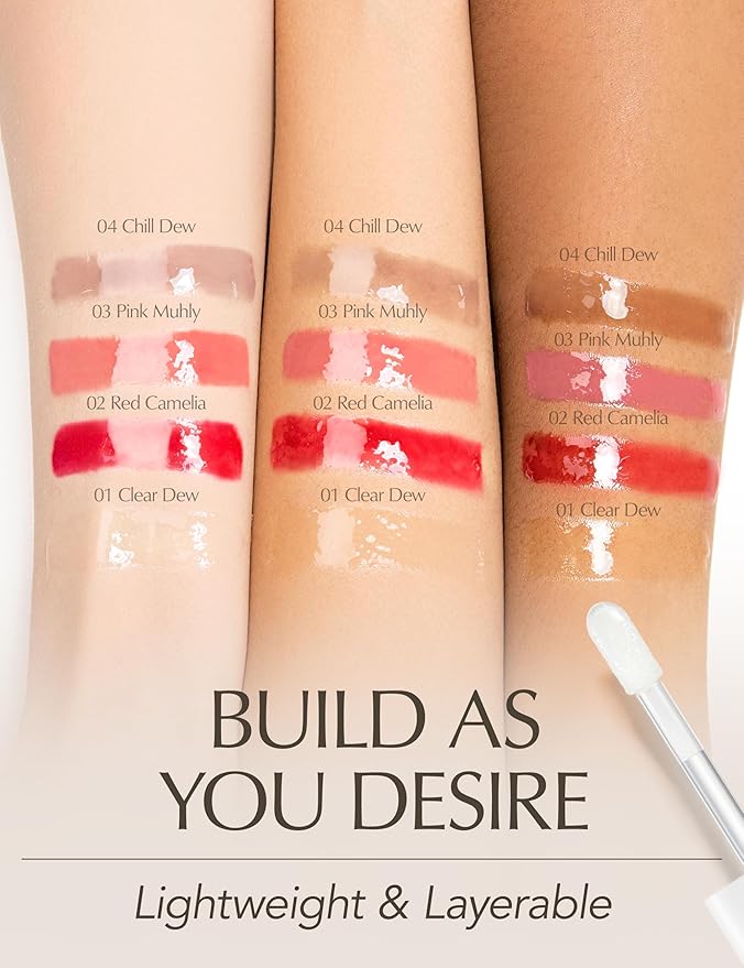 - [ CLEAR PLUMPING LIP GLOSS ] Fan of shining, shimmering lips? The natural bloom Clear Dew lip oil serum features a thick, smooth, but non-sticky texture with a dew-kissed sheen and a transparent glazed finish. Clear Dew has no noticeable scent and doesn’t cause harsh burning sensation and has a long-lasting effect!