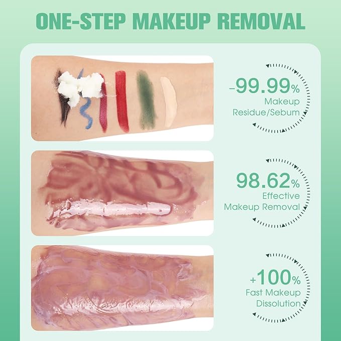 - Removes All Makeup --- The makeup remover balm with a luxurious texture, melting effortlessly upon contact with the skin, effectively breaks down stubborn waterproof makeup and sunscreens without leaving a greasy or heavy residue, or it stinging sensation to the eyes. Protects and moisturizes the skin during and after cleansing for long-lasting comfort.