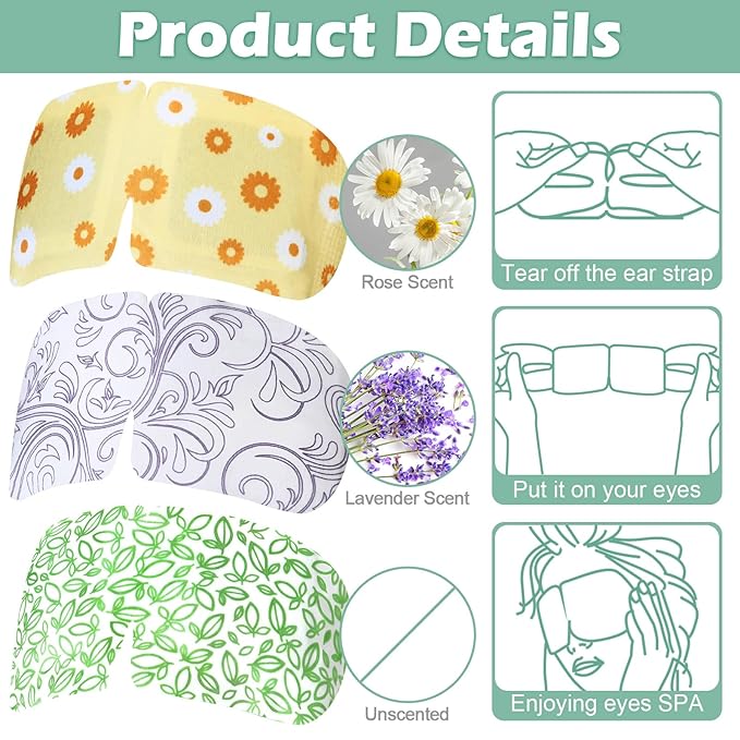 - Reliable Material: these steam eye masks disposable are made of quality non woven fabric, soft, breathable and safe to use; They are designed with elastic ear straps for a snug fit; 3 Styles eye mask bulk allow you to choose your favorite ones and keep your eyes relaxed freely