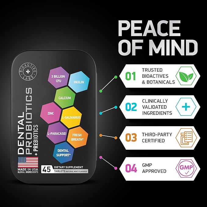 - Dental Probiotics for Teeth and Gums - Best Oral Probiotic for Teeth, Gums and Bad Breath - Lactobacillus Salivarius Probiotic and Prebiotic Blend - 45 Natural Mint Tablets in a Tin