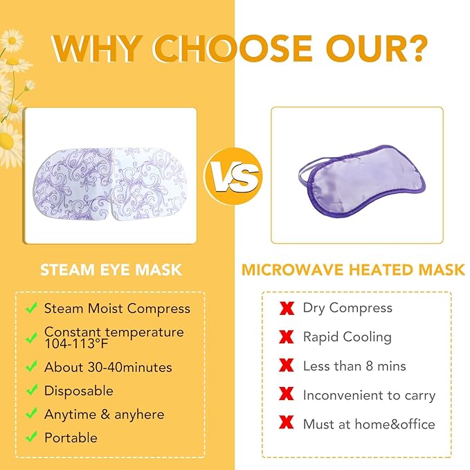 - 【Upgrade Steam Eye Mask】The self heating steam eye mask is made of high-quality cotton non-woven fabric, which is comfortable and skin friendly, fits the eyes well, and effectively reduces problems such as dryness, swelling, and dark circles under the eyes. Steam eye masks can release warm steam, promote blood circulation in the eyes, quickly relax eye muscles, and make the eyes glow naturally.