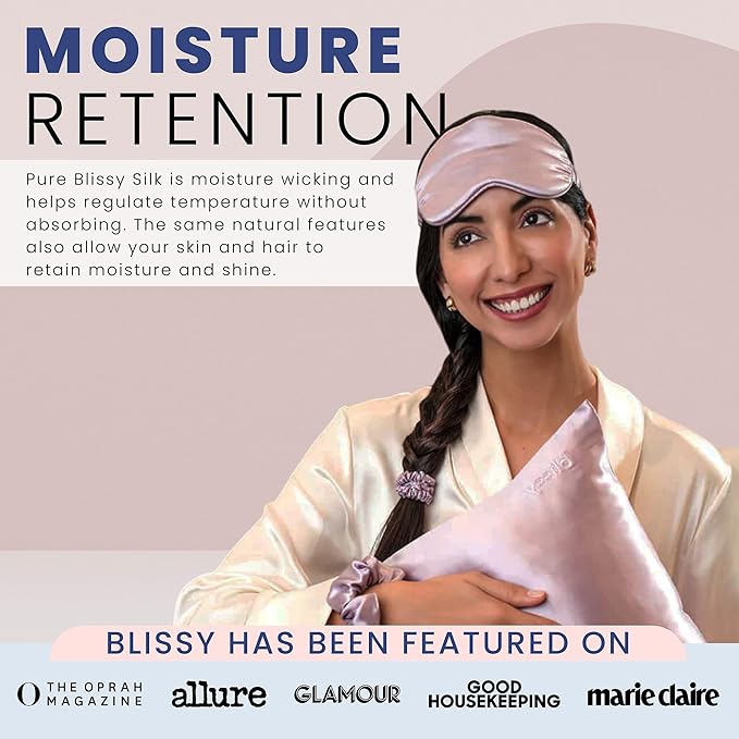 - MOISTURE RETENTION: Pure Blissy Silk is moisture wicking and helps regulate temperature without absorbing. The same natural features also allow your skin and hair to retain moisture and shine.
