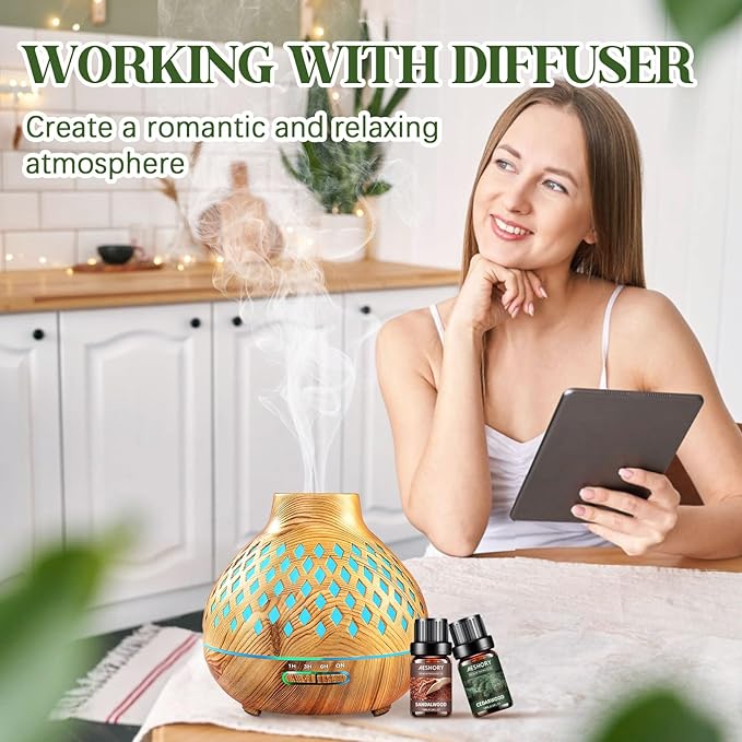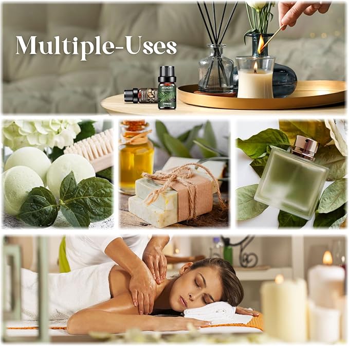 - đ˛ăMultiple UsesăThese essential oils can be used for aromatherapy, diffuser, massage, skin & hair care. Simply add a few drops to any diffuser and fill your entire room with that aroma, suitable for home care (large room, bedroom, living room, bathroom), office, outdoors, campground, yoga room and spa for a whole day relaxation.