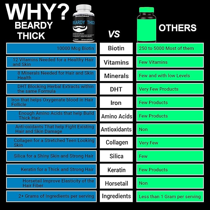 - Beard growth supplements. Effectively Promote Thicker and Stronger Hair with the Complete 40-INGREDIENT Formula that help Support Proper Nutritional Needs for Growing Beard Hair.