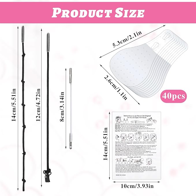 - Face lift tape: This face lift tape invisible with string can instantly lift sagging skin, make the chin and face slimmer, hide double chins and create a v-shaped face. Reshape facial contours, smooth wrinkles and give you an instant rejuvenated look.