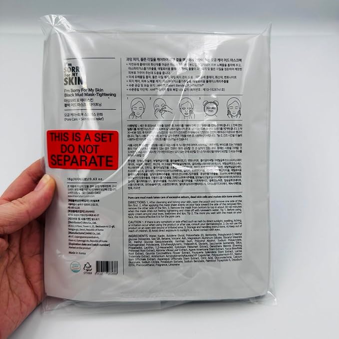 I'M SORRY FOR MY SKIN Bentonite Clay Mud Sheet Masks Set, Korean Skin Care, Exfoliating Face Masks with Volcanic Ash, Sebum Control, Pore Minimizer, Tightening, Soothing (Black 5pcs & Green 5pcs)
