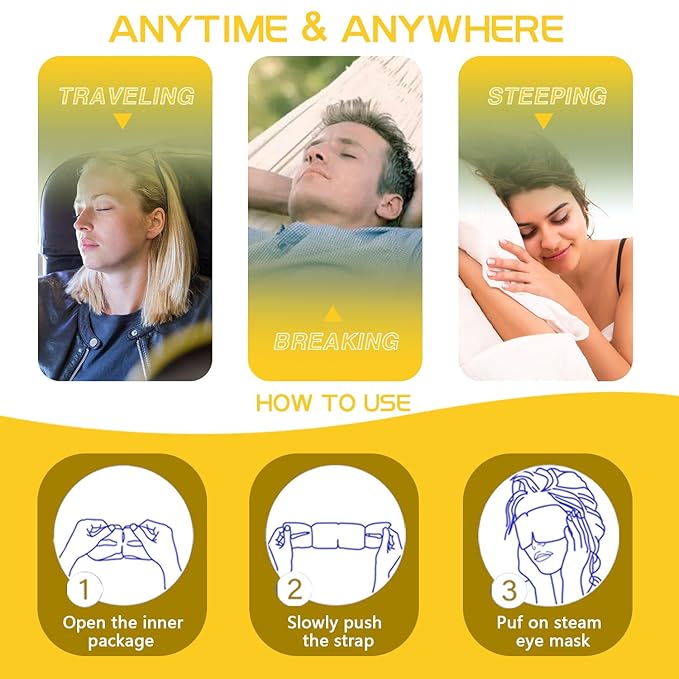- [Luxuriously Revive Vision] Indulge in the calm of our Steam Eye Mask, It boosts sleep and eye vitality.The warm steam banishes puffiness.
