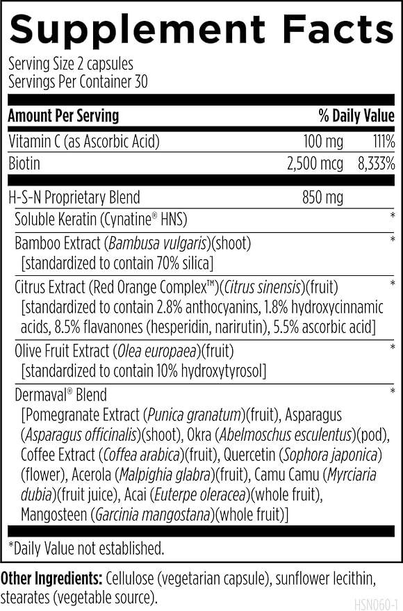 Designs for Health H-S-N Radiance - Hair Skin Nails Vitamins for Women and Men - Promote Healthy Hair, Skin Elasticity & Strong Nails with Vitamin C, Biotin, Keratin & Botanicals (60 Capsules)