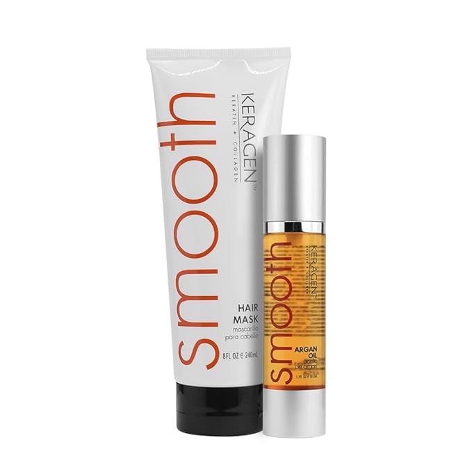 KERAGEN Hair Care Duo: Mask for Dry Damaged Hair (8 Oz) + Moroccan Argan Oil (1.7 Oz) - Deep Conditioning, Frizz-Free, Anti-Frizz Serum, Brilliant Shine, Hydrates, Seals Cuticles